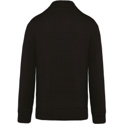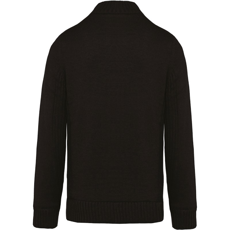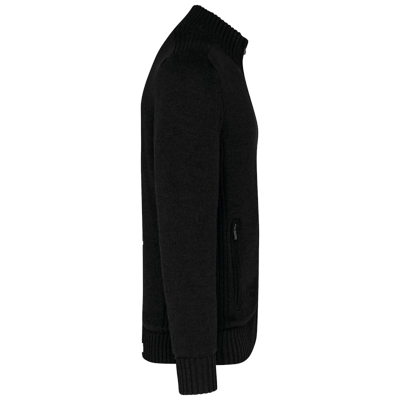 Extérieur : 50% coton / 50% acrylique. Intérieur : 100% polyester micropolaire. Doublure manches et garniture intérieure polyester. Matières chaudes et confortables. 2 poches et fermeture avant zippées. Tricotage en côtes 2 x 2 aux épaules, côtés et manches. Bord-côte 2 x 2 doublé au col, bas de manches et de vêtement. Zip invisible intérieur côté pour accès personnalisation côté ou dos.