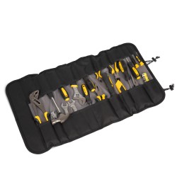 100% polyester. Trousse à outil à rouler conçu en polyester. Capacité de rangement jusqu'à 22 outils comme par exemple tournevis, pinces, clés anglaises...