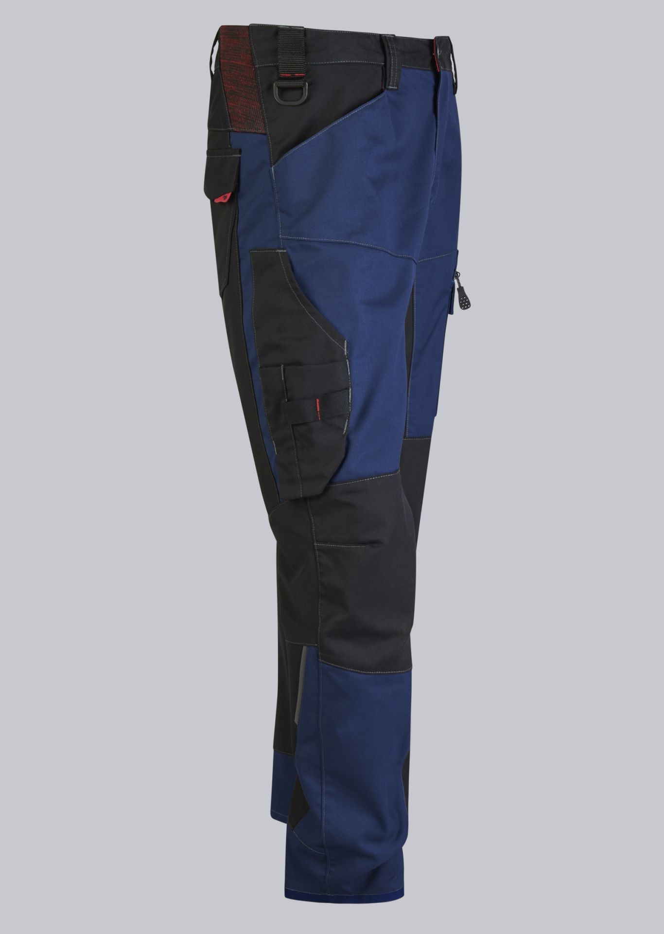 2 poches latérales, 2 poches revolver dont 1 avec fermeture à rabat, 1 grande poche cuisse avec poche zippée intégrée et poche smartphone plaquée, poche mètre fixée d’un seul côté avec poches crayons, anneau en D pour fixation d’accessoires.