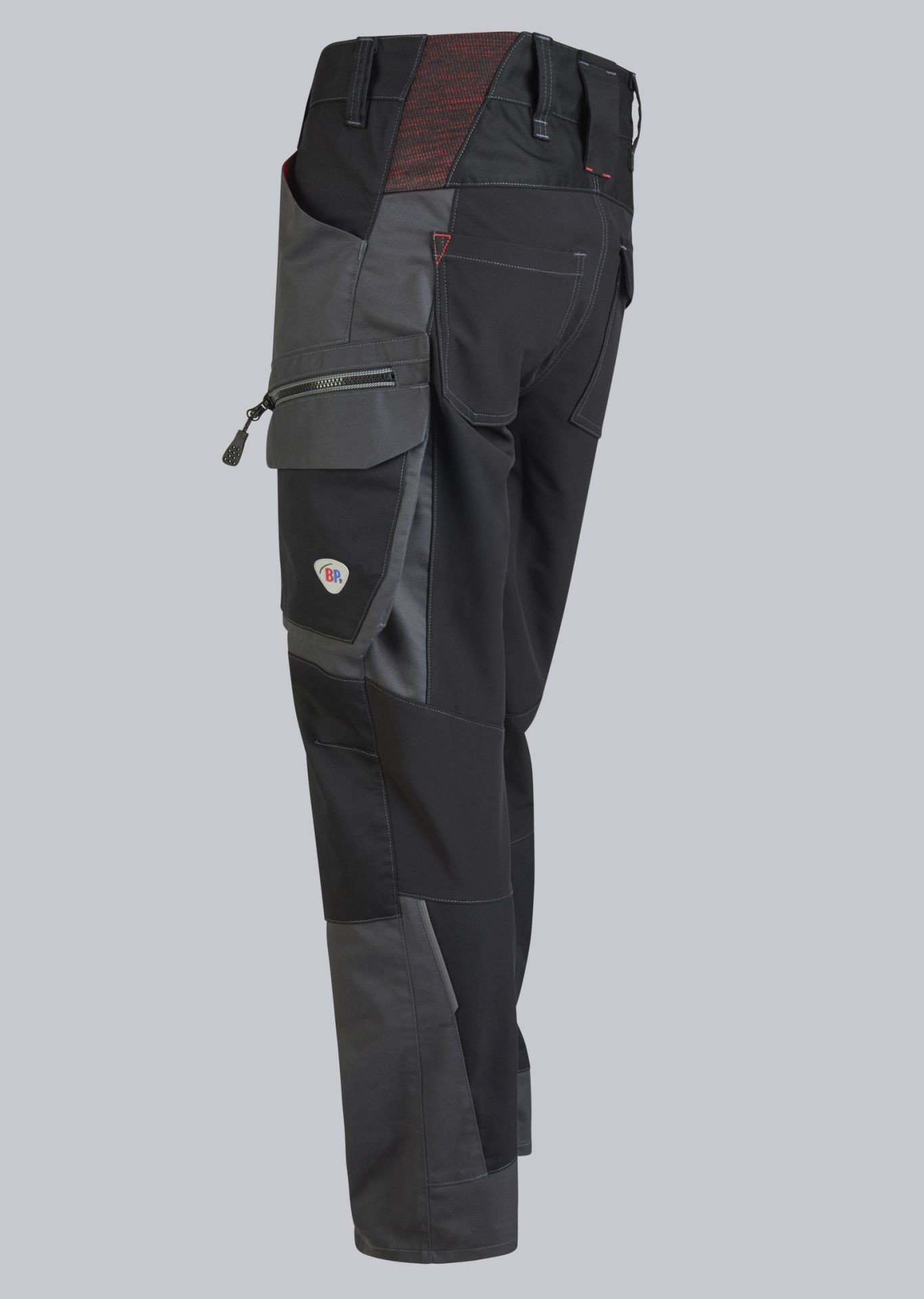 2 poches latérales, 2 poches revolver dont 1 avec fermeture à rabat, 1 grande poche cuisse avec poche zippée intégrée et poche smartphone plaquée, poche mètre fixée d’un seul côté avec poches crayons, anneau en D pour fixation d’accessoires.