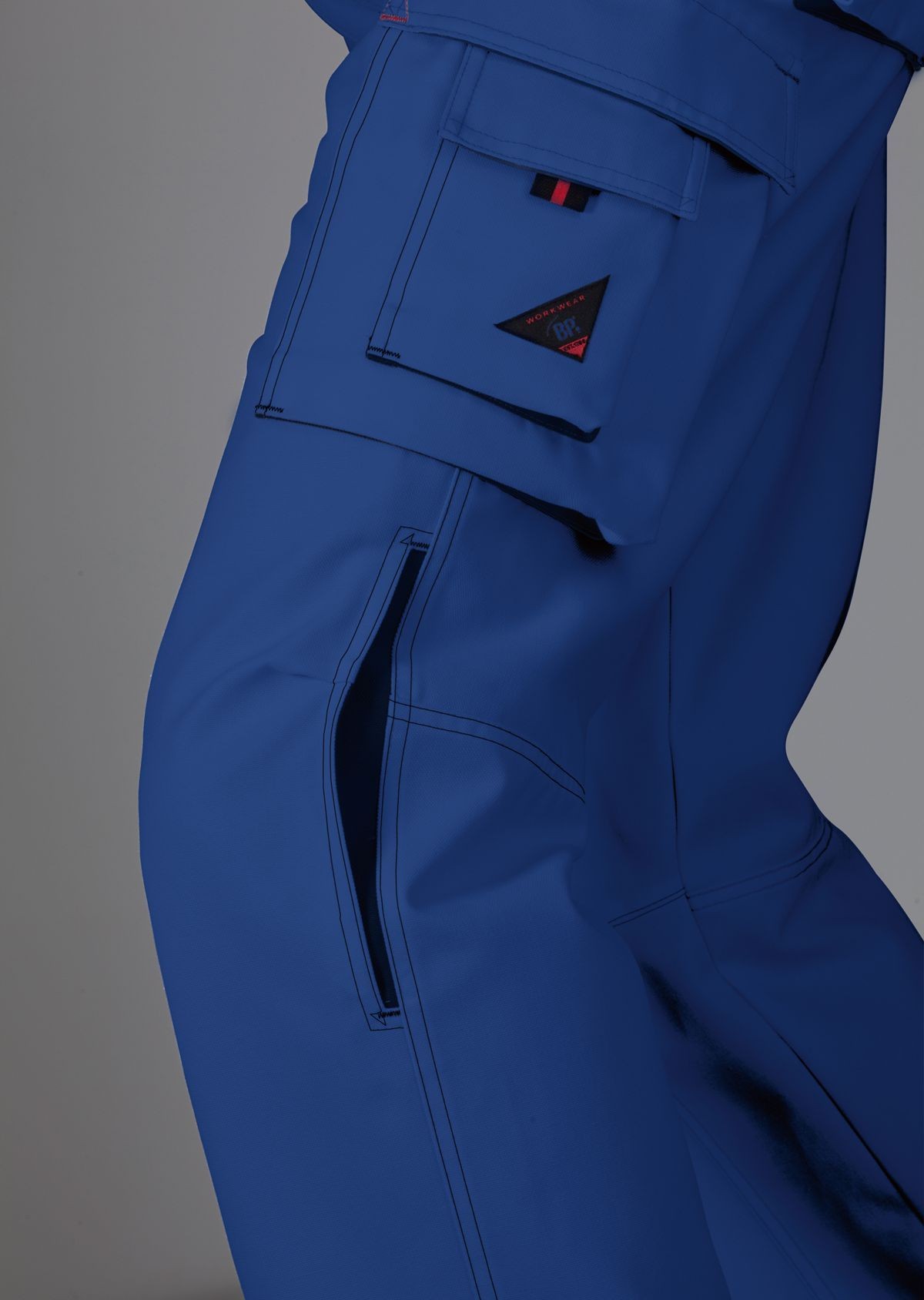 Jambe préformée avec empiècement d'aisance au niveau des genoux.