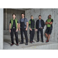 Anneau en D, 2 poches latérales, 2 poches revolver fermées par rabat et bouton-pression, 1 grande poche cuisse avec poche smartphone plaquée, double poche mètre fixée d'un seul côté.