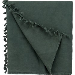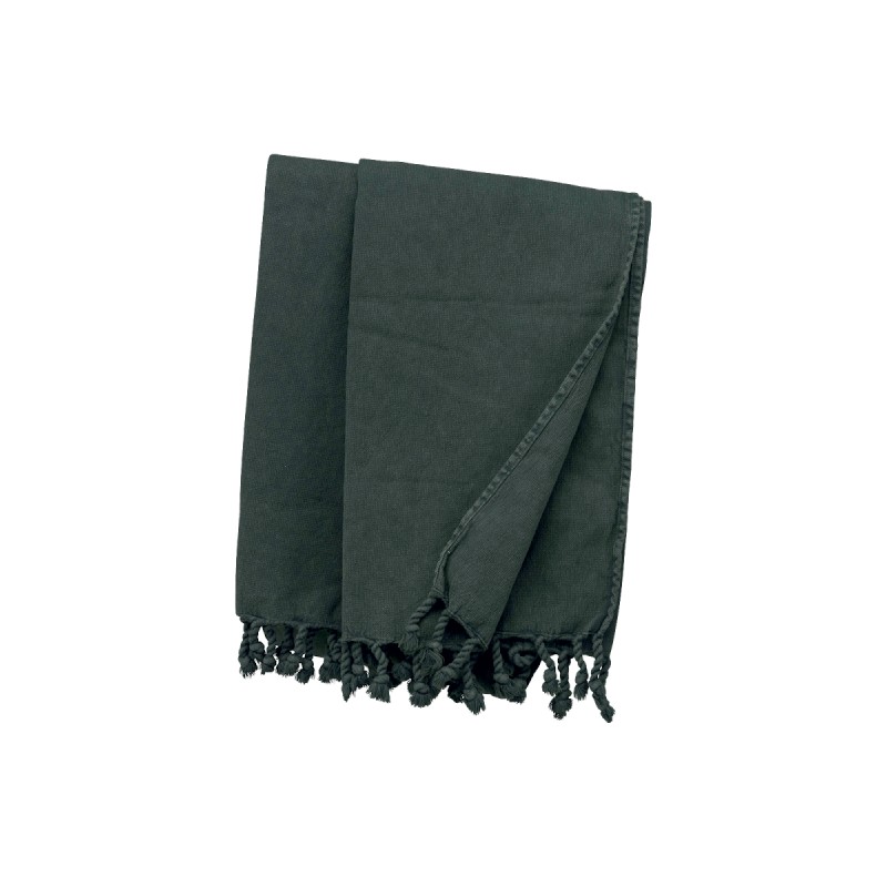 100% coton. Dimensions : 165 x 90 cm. Franges torsadées avec un nœud. Aspect délavé. Ce produit a subi un traitement spécial et présente un aspect volontairement vieilli. Ce procédé de fabrication implique de légères variations de couleurs d'un produit à l'autre et rend chaque pièce unique.