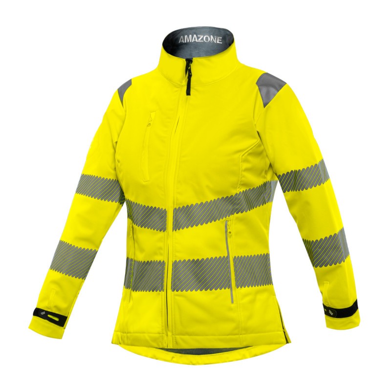 Softshell laminée 3 couches 100% polyester dos Micromink. Face intérieure au toucher soft. Extérieur déperlant (350 g/m²). Maille ajourée 100% polyester (110 g/m²). Suédine grise 100% polyester (col) (150 g/m²). Micromink grise 100% polyester (poches) (220 g/m²).