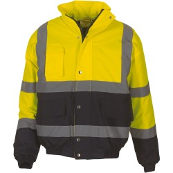 100% polyester. Revêtement Oxford PU imperméable 300D. Rembourrage matelassé en polyester de 190 g/m². Doublure en nylon. Zip ultra-résistant à l'avant avec rabat tempête doté de boutons pressions. Élastique Navy aux poignets et à la taille. 2 poches extérieures avec rabats tempête. Poche plaquée intérieure. Capuche avec cordons de serrage intégrée dans le col. Coutures cousues et collées pour une étanchéité parfaite. Conforme aux normes EN ISO471:2013 catégorie 3 et EN343 relative à la protection contre le mauvais temps.