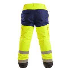 Pantalon de travail hiver haute visibilité Homme Longueur de jambes : standard 2 poches avant / 2 poches arrière à rabat avec velcro 2 poches cuisse à rabat avec velcro incluant 3 petites poches à crayon Taille élastiquée avec passant pour ceinture Fermeture zippée et bouton Bandes réfléchissantes 3M Éléments de constraste Bas des jambes ajustables par velcro Doublure 100 % polyester 60 gr/m² Tissage Oxford 100% polyester Rembourrage 100% polyester 160 gr/m² Poids : 180 gr/m² Coupe-vent et imperméable Maximum 30 lavages recommandés Lavable à 40 °C Certification selon la norme EN ISO 20471 (classe 1)