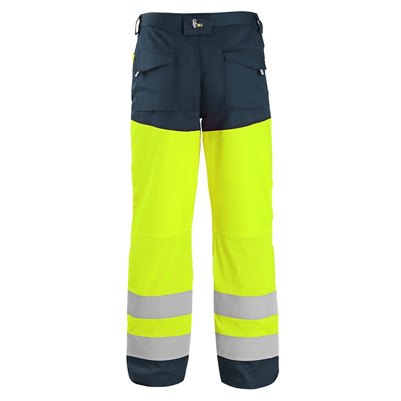 Pantalon de travail haute visibilité Homme Gamme Halifax Coupe droite Longueur de jambes : standard Tissu renforcé aux genoux Ouverture pour genouillères 2 poches avant / 2 poches arrière à rabat avec velcro 1 poche cuisse Taille élastiquée avec passant pour ceinture Fermeture zippée et bouton Bandes réfléchissantes Éléments de constraste Insert filet à l'arrière des genoux et à l'entrejambe Tissage coton twill 60% coton 40% polyester Poids : 190 gr/m² Maximum 50 lavages recommandés Lavable à 60°C et adapté au sèche-linge Certification selon la norme EN ISO 20471 (classe 2)