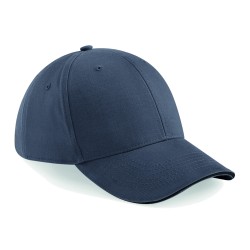 Coton brosé | Étiquette détachable pour faciliter la modification de la marque | 6 panneaux | Profile moyen | Visière précourbée | Visière sandwich de couleurs contrastées | Panneaux frontaux structurés | Trous d'aération brodés | Sangle de serrage par boucle réglable