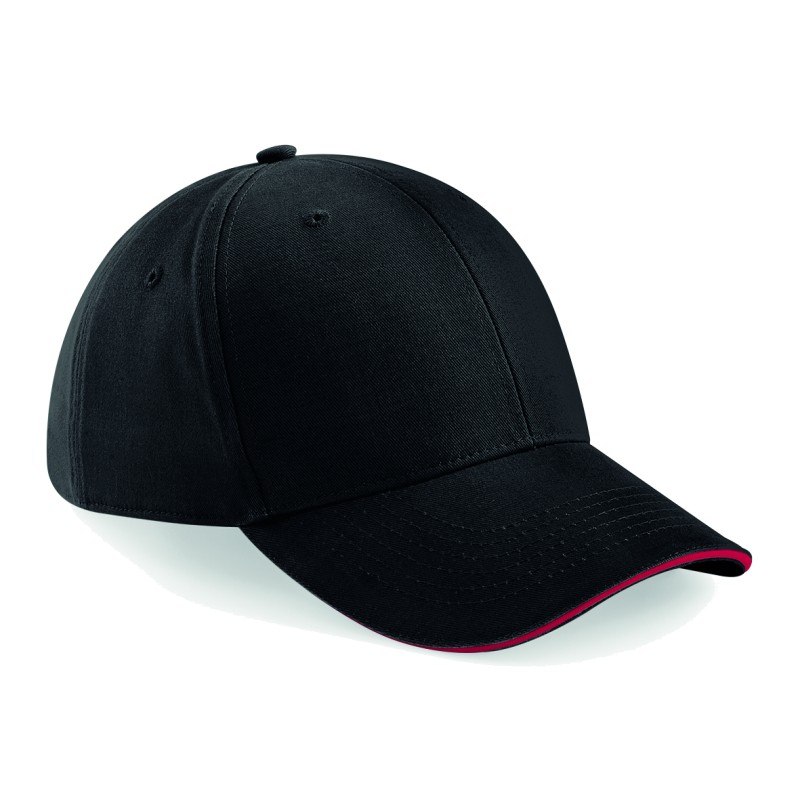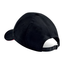 Coton brosé | Étiquette détachable pour faciliter la modification de la marque | 6 panneaux | Profile moyen | Visière précourbée | Visière sandwich de couleurs contrastées | Panneaux frontaux structurés | Trous d'aération brodés | Sangle de serrage par boucle réglable
