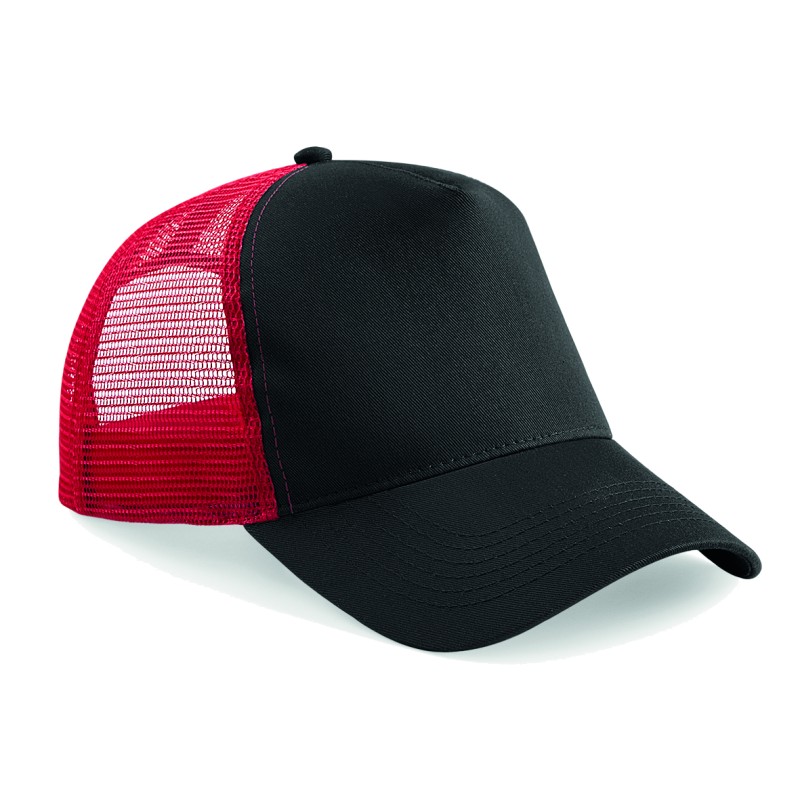Fermeture en matière plastique à taille ajustable | 5 panneaux | Visière précourbée | Couleurs avec White = front blanc, Visière + Maille colorée