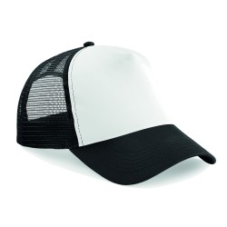 Fermeture en matière plastique à taille ajustable | 5 panneaux | Visière précourbée | Couleurs avec White = front blanc, Visière + Maille colorée