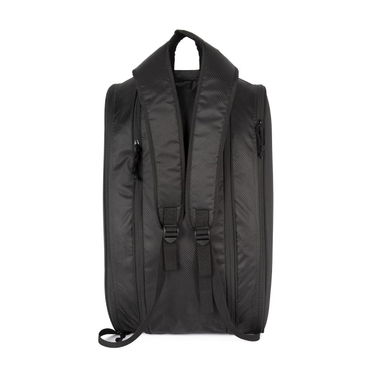 100% polyester. Sac à dos de sport spécial padel. Compartiment pour raquettes des 2 côtés. Poche avec compartiment pour chaussures séparé. Grand volume.