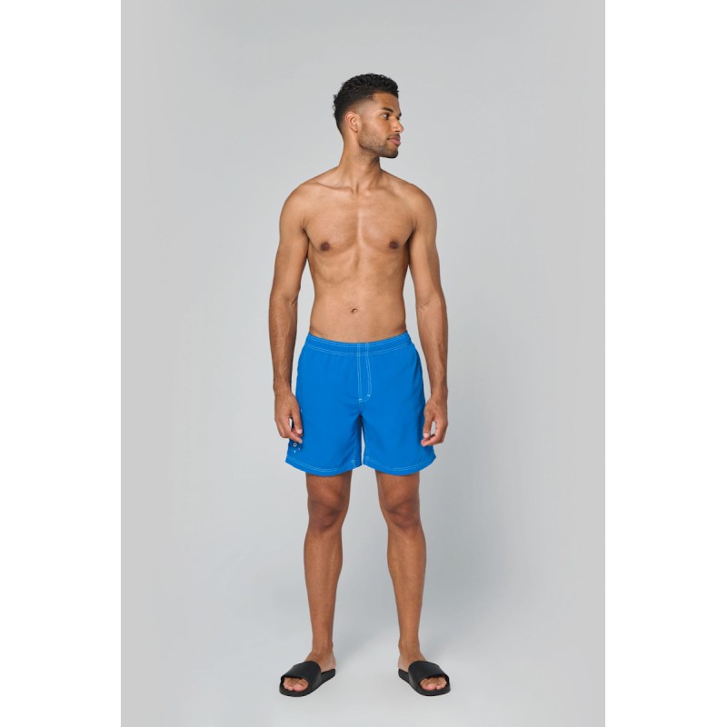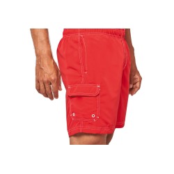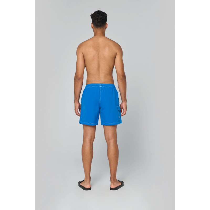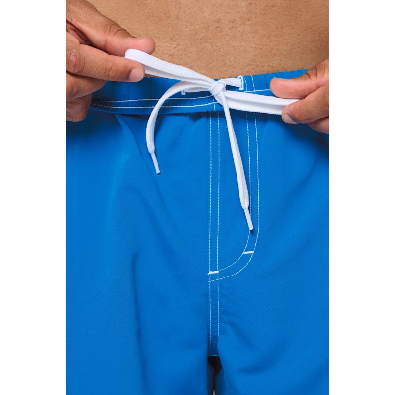 100% polyester microfibre. Tissu toucher peau de pêche. Ceinture élastiquée avec cordon de serrage. Slip intégré en maille filet. 2 poches côté et 1 poche plaquée avec rabat et œillet. Finition surpiqûres contrastées.