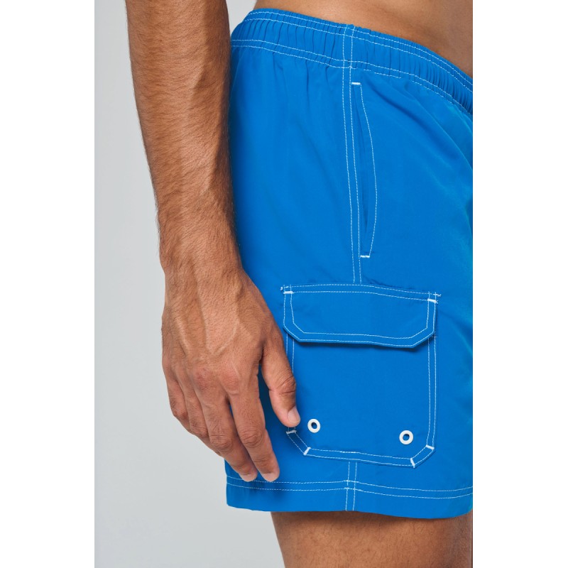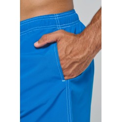 100% polyester microfibre. Tissu toucher peau de pêche. Ceinture élastiquée avec cordon de serrage. Slip intégré en maille filet. 2 poches côté et 1 poche plaquée avec rabat et œillet. Finition surpiqûres contrastées.