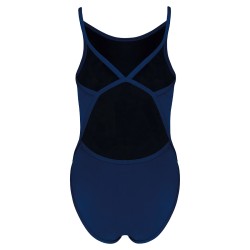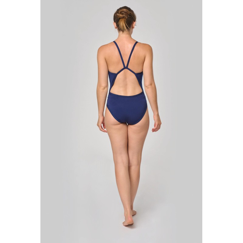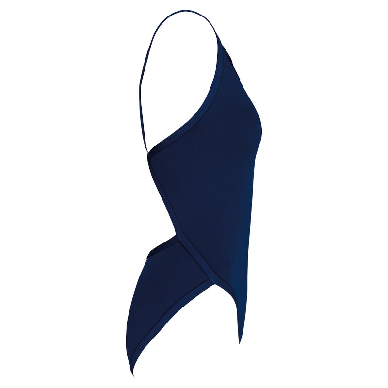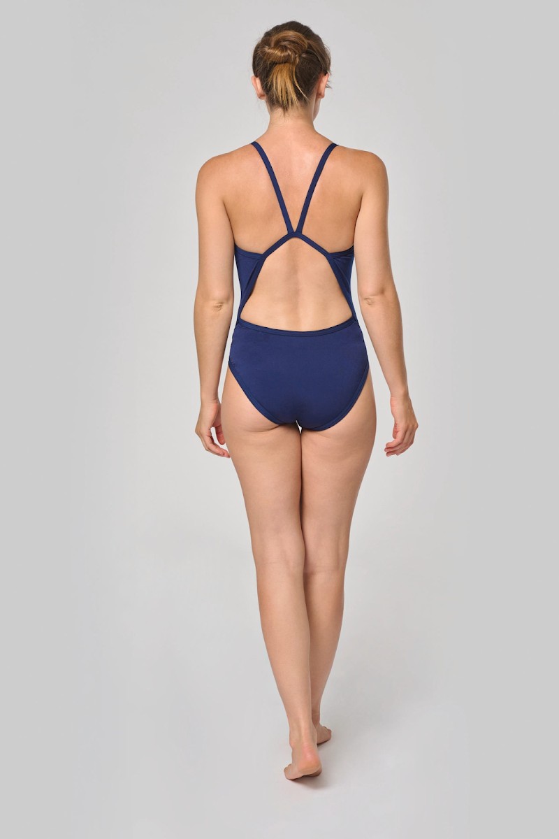 100% polyester dont 43% polytéréphtalate de butylène. Matière très extensible. Résistant au chlore. Protection UV 50+. Encolure devant peu profonde. Finitions biais et double surpiqûres pour bretelles, corps et ouvertures jambes. Échancré sur le haut de la jambe pour affiner la silhouette. Dos nageur. Devant entièrement doublé pour éviter la transparence. Fabriqué en Espagne.