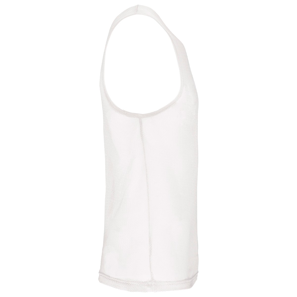 100% polyester. Maille ajourée. Finition double aiguille au bas du vêtement.