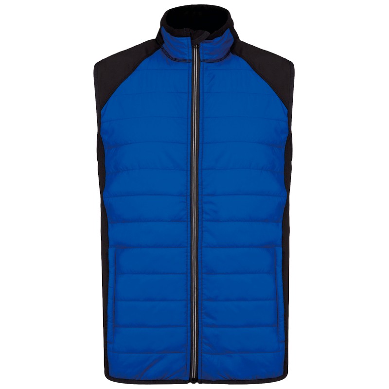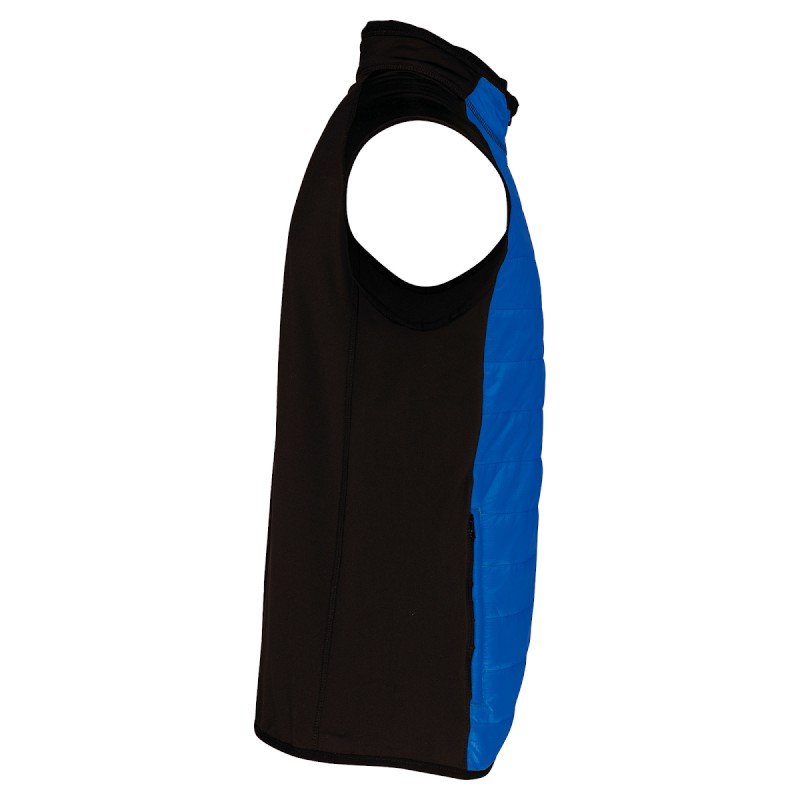Extérieur : corps 100% polyamide ripstop avec traitement déperlant, côtés et dos 90% polyester / 10% élasthanne. (Marl Grey/ Sporty Navy : 100% polyester). Garniture intérieure 100% polyester. Matière ultra confortable. 2 poches zippées devant. Fermeture zippée contrastée. Biais élastiqué aux emmanchures et au bas du vêtement. 1 zip côté cœur pour accès personnalisation.