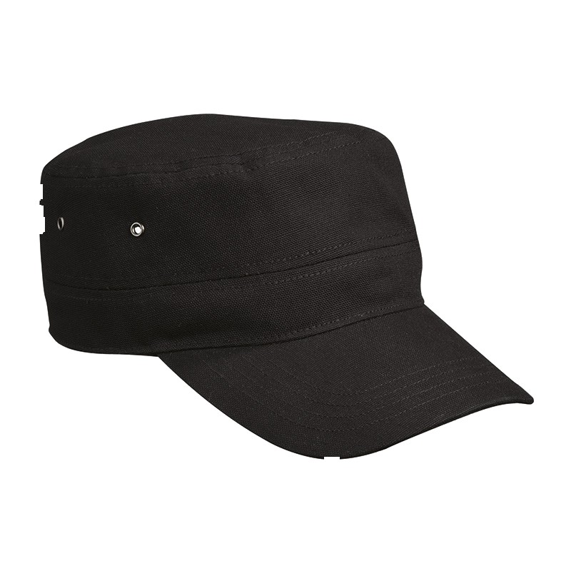 Casquette Militaire Unisexe 4 Oeillets d'aérations métalliques 4 surpiqûres Bandeau de transpiration doublé en coton Fermeture Velcro 100% coton 250 g/m² Espace d'impression: 9 x 5 cm maxi