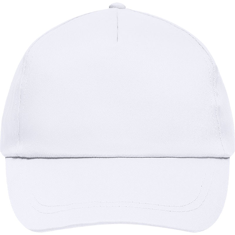Casquette Unie 5 Panneaux Unisexe 4 Oeillets d'aérations brodés Fronton légèrement renforcé 2 surpiqûres Bandeau de transpiration coton Fermeture Velcro Visière préformée 100% coton twill léger 165 g/m²
