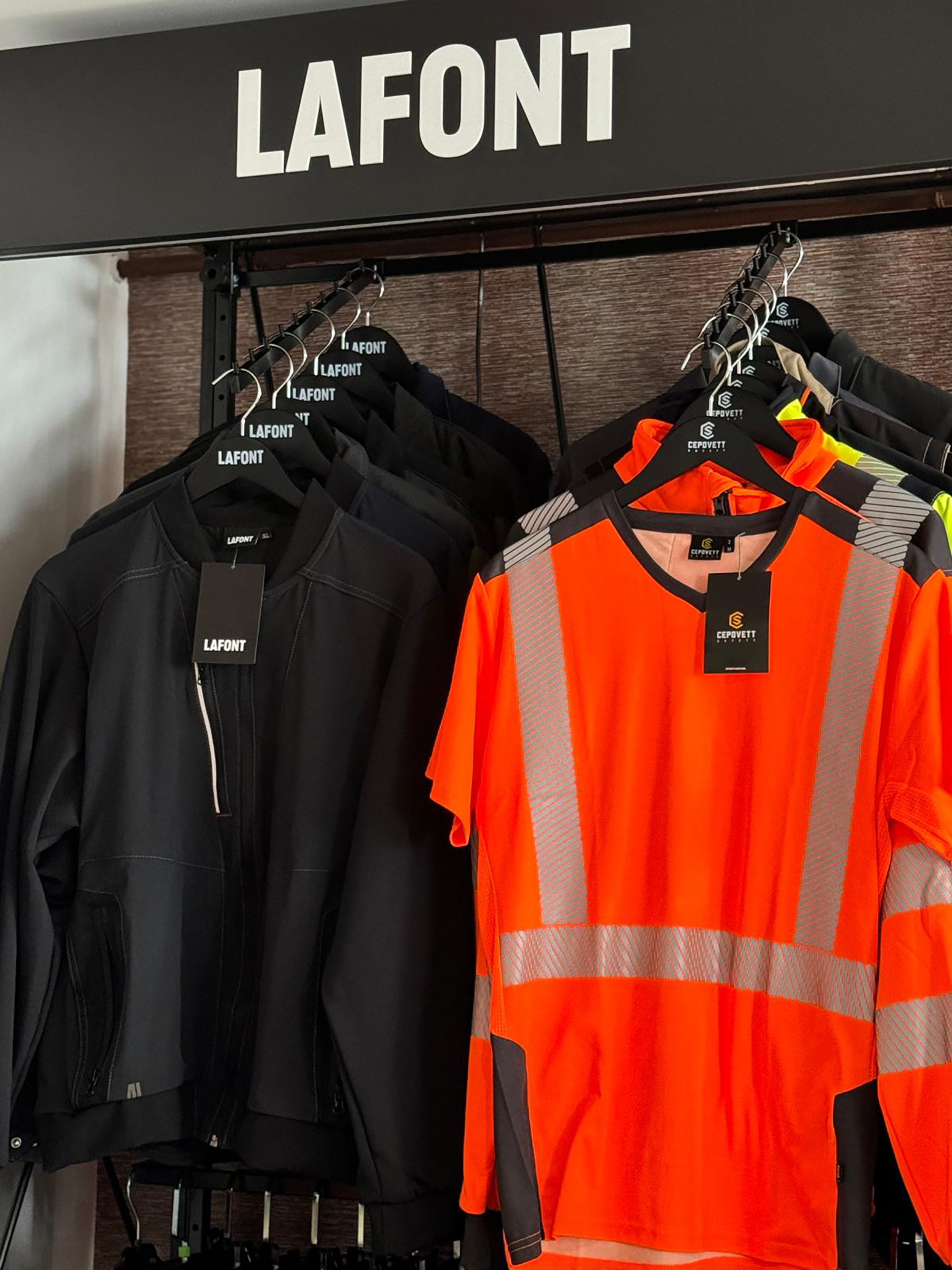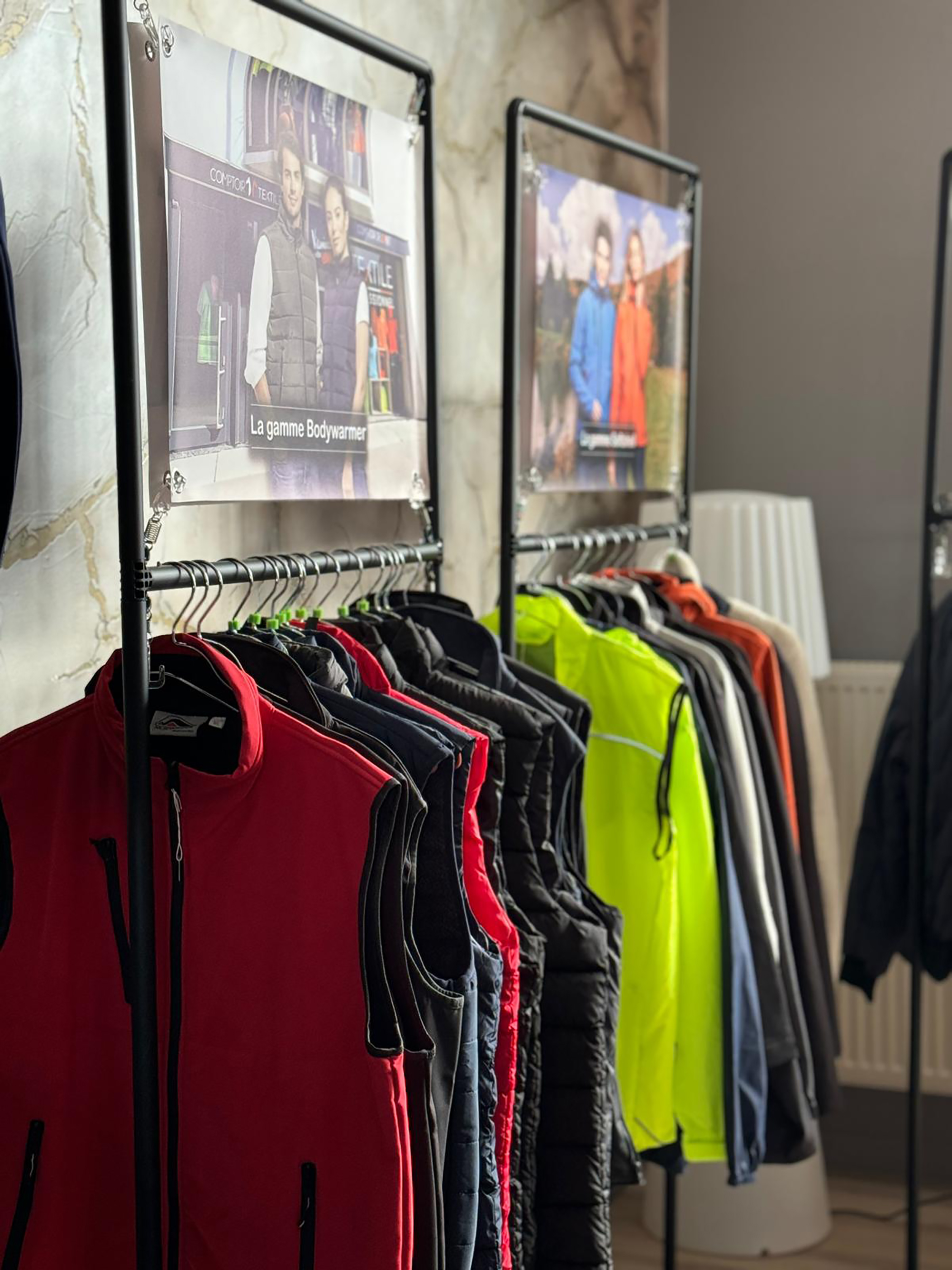 En 2024, nous avons ouvert notre showroom à Golbey : un lieu unique pour voir, toucher, essayer et imaginer vos tenues d’image et vêtements pros.