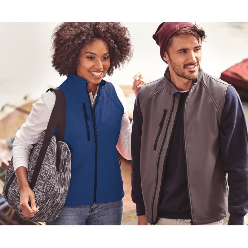 Tissu léger respirant à 3 couches, imperméable et coupe-vent. Intérieur en micropolaire. 2 poches latérales zippées et 1 poche poitrine zippée. Accès pour personnalisation.