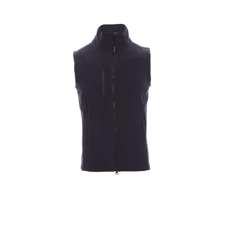 Gilet en polaire pour homme, zip intégral en plastique à double curseur, coupe raglan, deux poches frontales avec zip couvert et une poche poitrine avec zip.