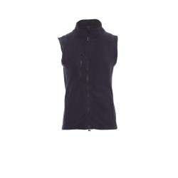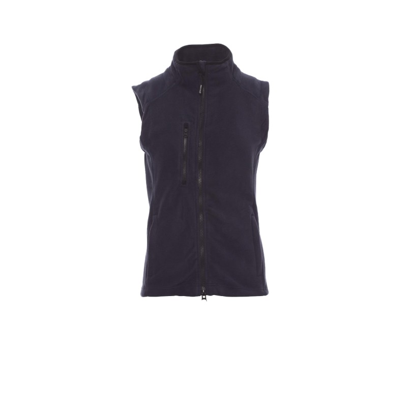 Gilet cintré en polaire pour femme, zip intégral en plastique à double curseur, coupe raglan, deux poches frontales avec zip couvert et une poche poitrine avec zip.