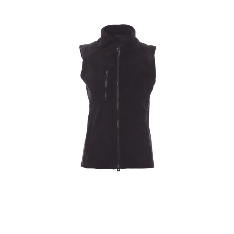 Gilet cintré en polaire pour femme, zip intégral en plastique à double curseur, coupe raglan, deux poches frontales avec zip couvert et une poche poitrine avec zip.