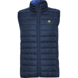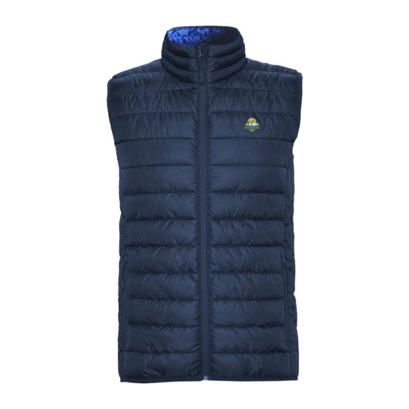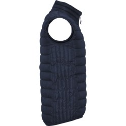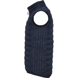 Gilet sans manches au toucher plume pour homme. Fermetures zippées inversées assorties. Deux poches avant avec fermeture zippée. Doublure intérieure contrastée. Bordure élastique assortie à l'ourlet. Vêtement léger et pliable. Résistant à l'eau. Modèle coupe-vent. Le mannequin mesure 185 cm et porte la taille M.