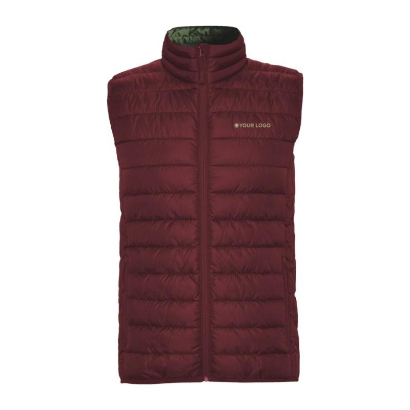Gilet sans manches au toucher plume pour homme. Fermetures zippées inversées assorties. Deux poches avant avec fermeture zippée. Doublure intérieure contrastée. Bordure élastique assortie à l'ourlet. Vêtement léger et pliable. Résistant à l'eau. Modèle coupe-vent. Le mannequin mesure 185 cm et porte la taille M.