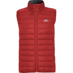 Gilet sans manches au toucher plume pour homme. Fermetures zippées inversées assorties. Deux poches avant avec fermeture zippée. Doublure intérieure contrastée. Bordure élastique assortie à l'ourlet. Vêtement léger et pliable. Résistant à l'eau. Modèle coupe-vent. Le mannequin mesure 185 cm et porte la taille M.