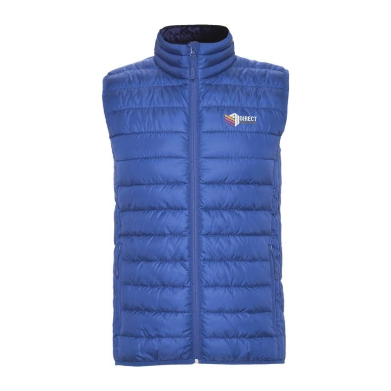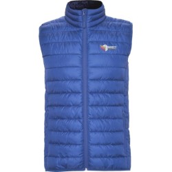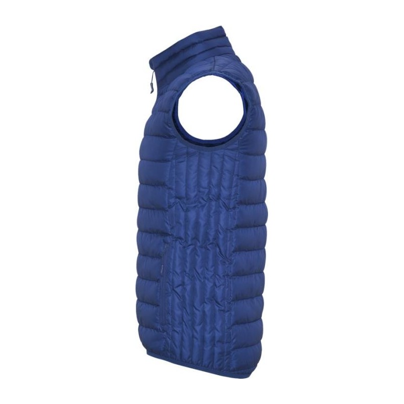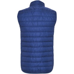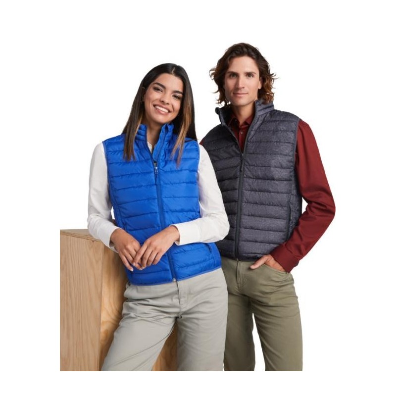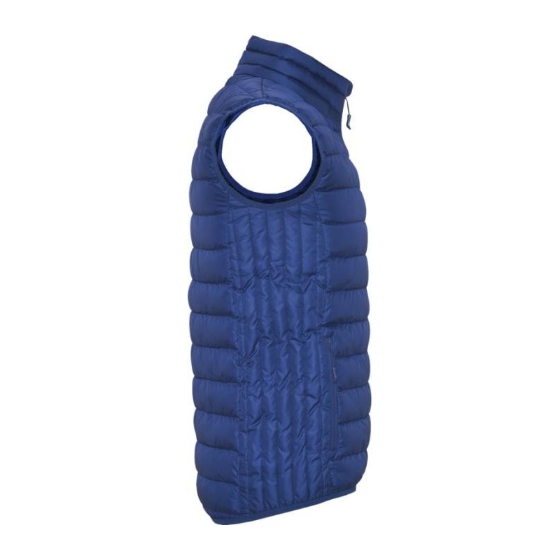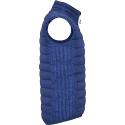 Gilet sans manches au toucher plume pour homme. Fermetures zippées inversées assorties. Deux poches avant avec fermeture zippée. Doublure intérieure contrastée. Bordure élastique assortie à l'ourlet. Vêtement léger et pliable. Résistant à l'eau. Modèle coupe-vent. Le mannequin mesure 185 cm et porte la taille M.