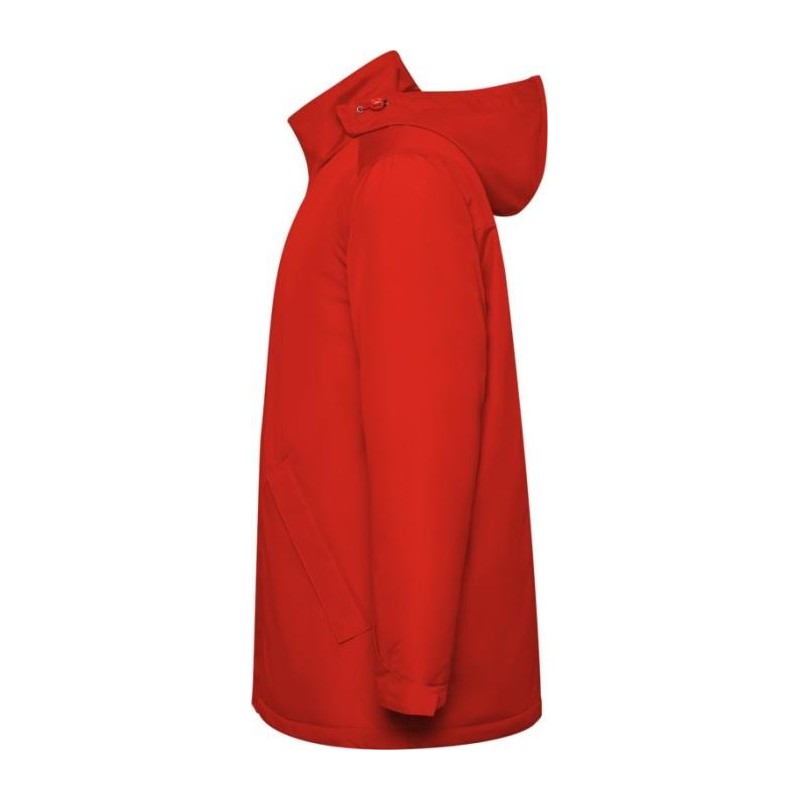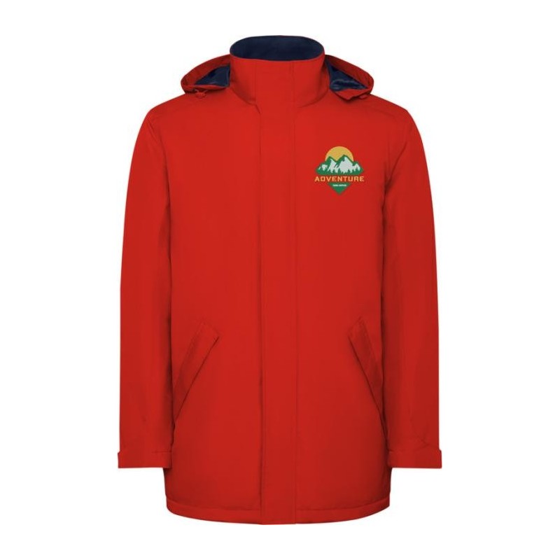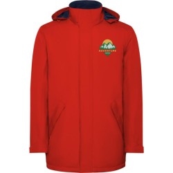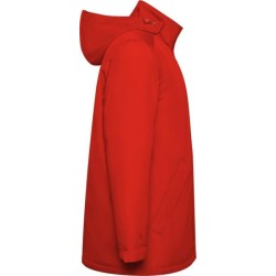 Veste parka matelassée et imperméable pour enfant. Col montant avec capuche rabattable et fermeture velcro. Fermeture à glissière centrale assortie avec rabat. Poches latérales avec fermeture à glissière et rabat fixe. Poche intérieure avec fermeture velcro. Poignets réglables avec boucle velcro. Accès intérieur aux renforts dans le dos et sur la poitrine (côté gauche).