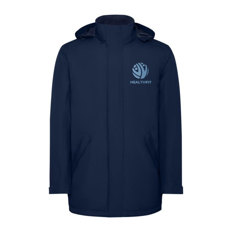 Veste parka matelassée et imperméable pour homme. Col montant avec capuche repliée et amovible avec fermeture velcro. Fermeture à glissière centrale assortie avec rabat. Poches latérales avec fermeture à glissière et rabat fixe. Poche intérieure avec fermeture velcro. Poignets réglables avec boucle velcro. Accès intérieur aux renforts dans le dos et sur la poitrine (côté gauche).