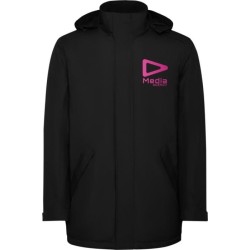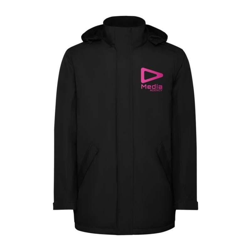 Veste parka matelassée et imperméable pour homme. Col montant avec capuche repliée et amovible avec fermeture velcro. Fermeture à glissière centrale assortie avec rabat. Poches latérales avec fermeture à glissière et rabat fixe. Poche intérieure avec fermeture velcro. Poignets réglables avec boucle velcro. Accès intérieur aux renforts dans le dos et sur la poitrine (côté gauche).
