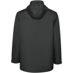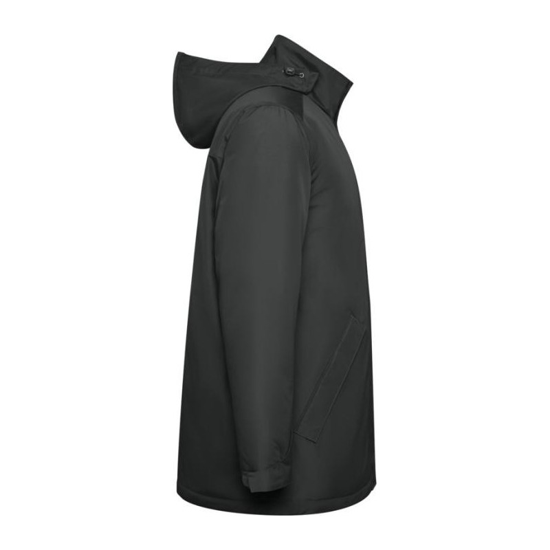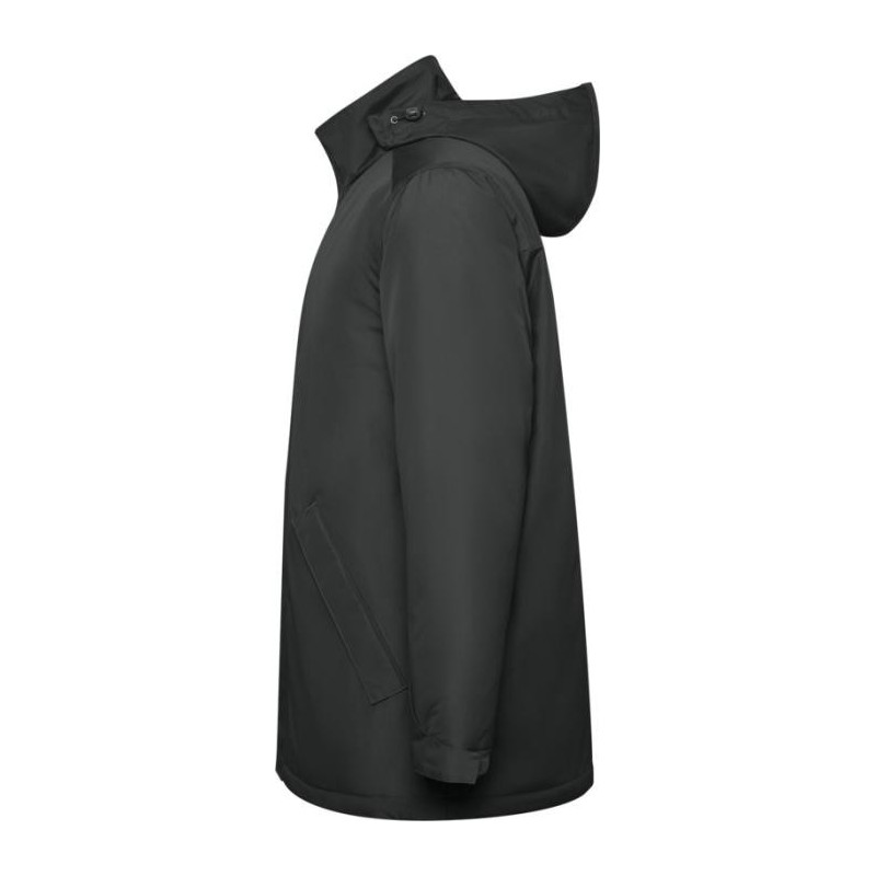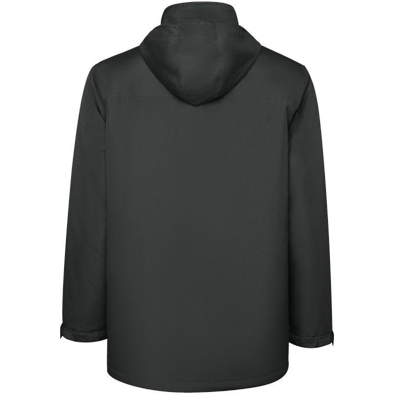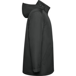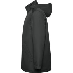 Veste parka matelassée et imperméable pour homme. Col montant avec capuche repliée et amovible avec fermeture velcro. Fermeture à glissière centrale assortie avec rabat. Poches latérales avec fermeture à glissière et rabat fixe. Poche intérieure avec fermeture velcro. Poignets réglables avec boucle velcro. Accès intérieur aux renforts dans le dos et sur la poitrine (côté gauche).