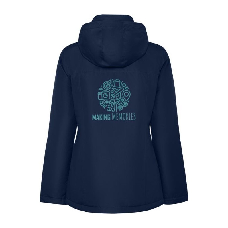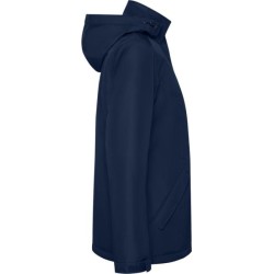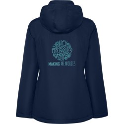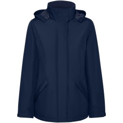 Veste parka matelassée et imperméable pour femme. Coupe ajustée. Col montant avec capuche repliée et amovible avec fermeture velcro. Fermeture zippée assortie avec rabat. Poches latérales avec fermeture zippée et rabat fixe. Poche intérieure avec fermeture velcro. Poignets réglables avec boucle velcro. Accès intérieur aux renforts dans le dos et sur la poitrine (côté gauche).