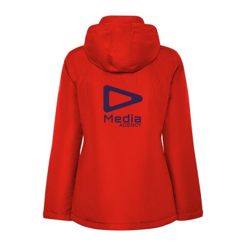 Veste parka matelassée et imperméable pour femme. Coupe ajustée. Col montant avec capuche repliée et amovible avec fermeture velcro. Fermeture zippée assortie avec rabat. Poches latérales avec fermeture zippée et rabat fixe. Poche intérieure avec fermeture velcro. Poignets réglables avec boucle velcro. Accès intérieur aux renforts dans le dos et sur la poitrine (côté gauche).