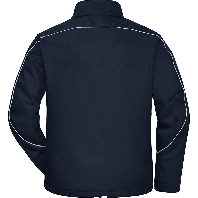 Veste de travail softshell Unisexe Gamme solid Grande taille Doublure polaire Fermetures zippées YKK 2 poches latérales zippées 2 poches poitrine et poches intérieures Inserts et passepoil réfléchissants Coupe classique Coupe-vent et imperméable 100% polyester Poids : 320 gr/m² Softshell avec membrane TPU 3 couches 2 000 mm de colonne d'eau et 2 000 gr d'évaporation en 24h