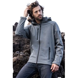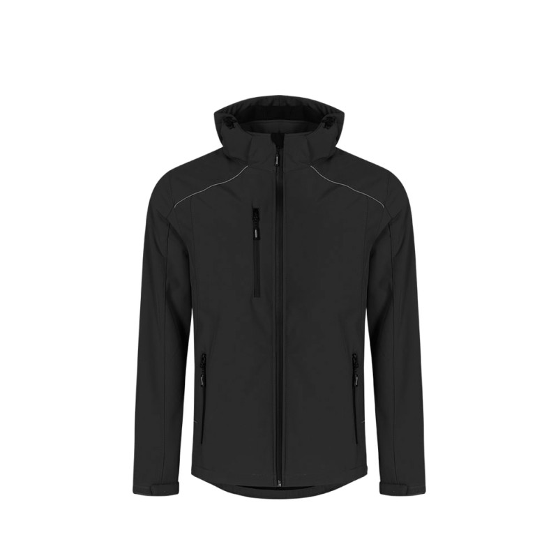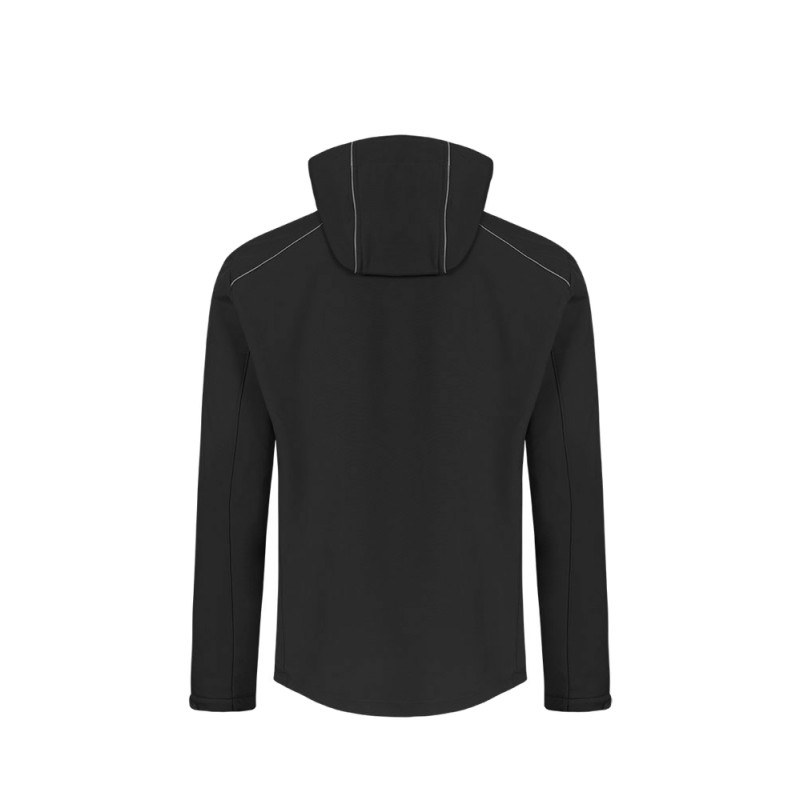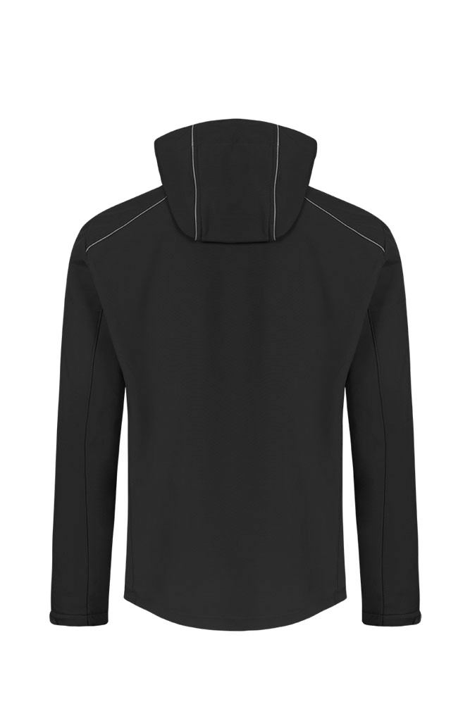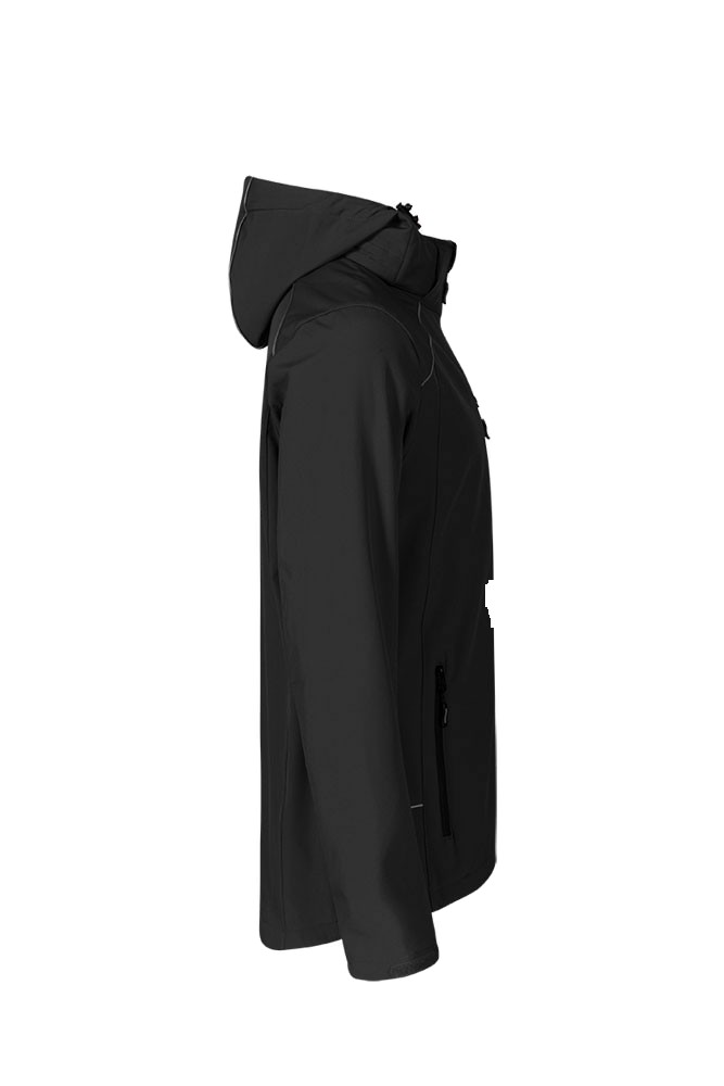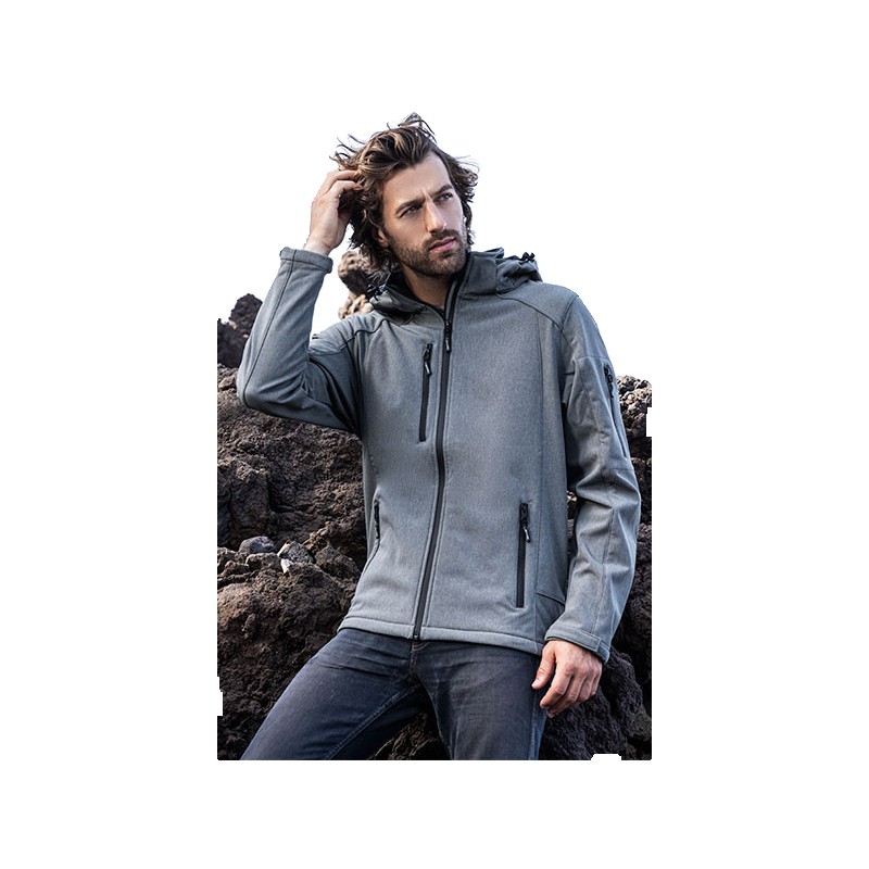 Veste Softshell homme, capuche amovible avec régulateur de volume, fermetures éclair étanches, protection menton, poche Napoléon, poche manche, poignets réglables avec fermeture velcro, cordon de serrage tunnel au bas avec stop-cordons à l'intérieur, dos plus long avec ourlet incurvé, 2 poches latérales zippées. , porte-clés cousu dans la poche latérale, passepoil réfléchissant et tirettes de zip, coutures des panneaux, étiquette de taille neutre, respirant, imperméable 8.000 mm, polaire softshell collée bi-élastique, matériau extérieur 95% polyester, 5% élasthanne, matériau intérieur 100% polyester, 310 g/m², S–5XL. Unité = 1 pièce.