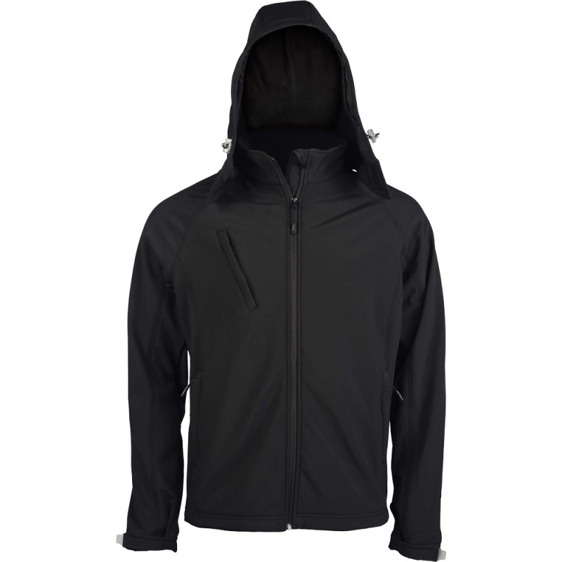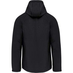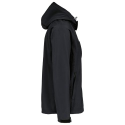 95% polyester / 5% élasthanne. Tissu contrecollé 3 couches respirant 1000 g/m² / 24 h et imperméable 5000 mm. Extérieur : 95% polyester / 5% élasthanne. Intermédiaire : membrane respirante et micro-aérée. Couche intérieure : micropolaire antiboulochage. Manches raglan. Fermeture zippée. 2 poches zippées devant. 1 poche zippée poitrine côté droit. Capuche amovible avec cordon de serrage et fermeture auto-agrippante. Patte de serrage auto-agrippante au bas de manches. Zip invisible intérieur côté cœur pour accès personnalisation.