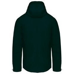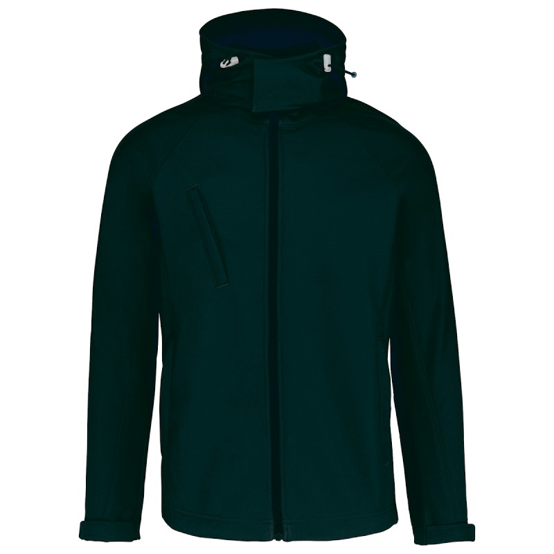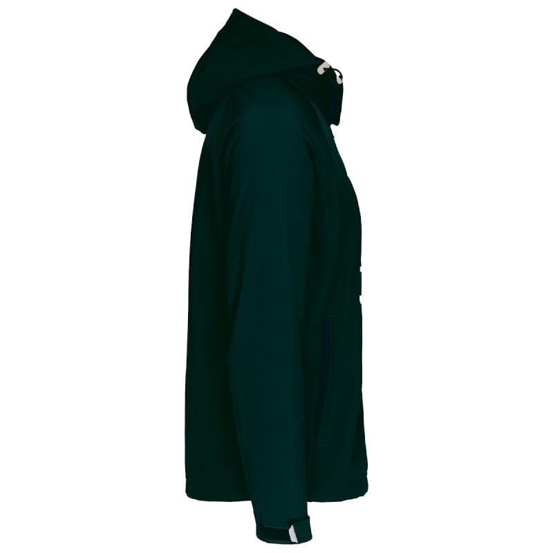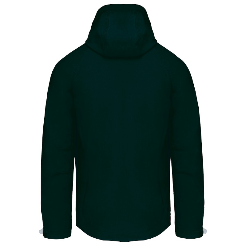 95% polyester / 5% élasthanne. Tissu contrecollé 3 couches respirant 1000 g/m² / 24 h et imperméable 5000 mm. Extérieur : 95% polyester / 5% élasthanne. Intermédiaire : membrane respirante et micro-aérée. Couche intérieure : micropolaire antiboulochage. Manches raglan. Fermeture zippée. 2 poches zippées devant. 1 poche zippée poitrine côté droit. Capuche amovible avec cordon de serrage et fermeture auto-agrippante. Patte de serrage auto-agrippante au bas de manches. Zip invisible intérieur côté cœur pour accès personnalisation.