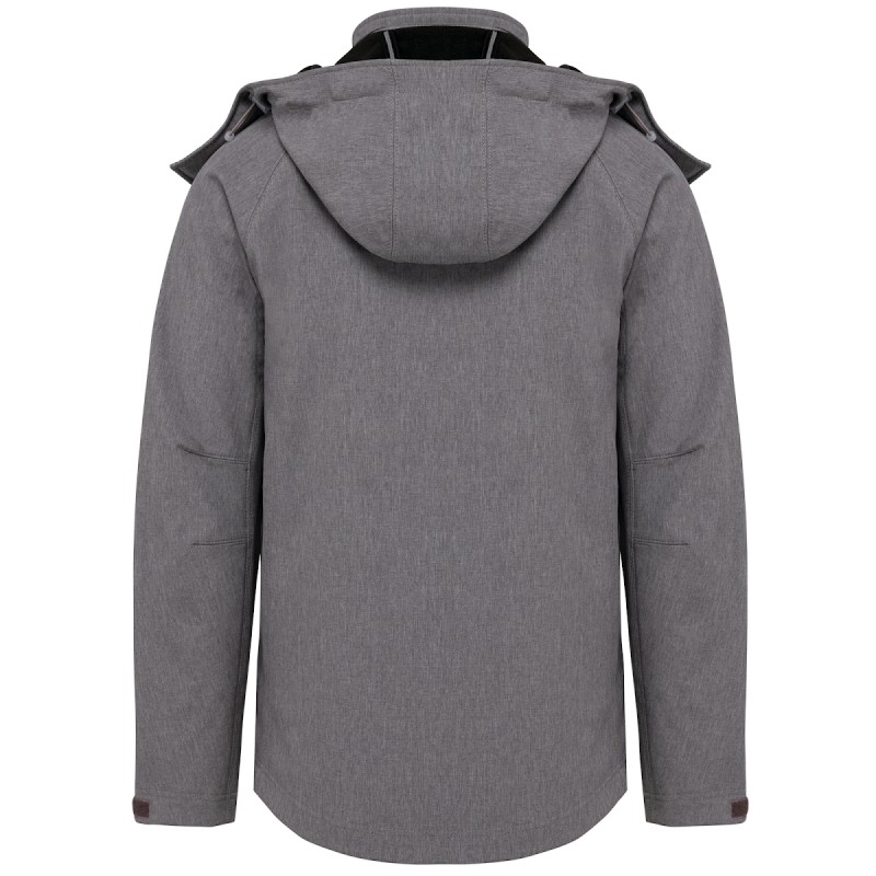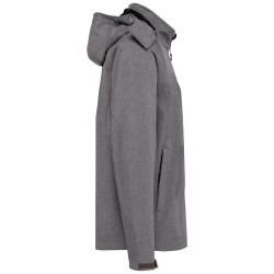 95% polyester / 5% élasthanne. Tissu contrecollé 3 couches respirant 1000 g/m² / 24 h et imperméable 5000 mm. Extérieur : 95% polyester / 5% élasthanne. Intermédiaire : membrane respirante et micro-aérée. Couche intérieure : micropolaire antiboulochage. Manches raglan. Fermeture zippée. 2 poches zippées devant. 1 poche zippée poitrine côté droit. Capuche amovible avec cordon de serrage et fermeture auto-agrippante. Patte de serrage auto-agrippante au bas de manches. Zip invisible intérieur côté cœur pour accès personnalisation.