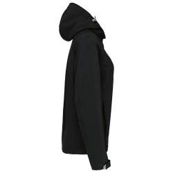 95% polyester / 5% élasthanne. Tissu contrecollé 3 couches respirant 1000 g/m²/ 24 h et imperméable 5000 mm. Extérieur : 95% polyester / 5% élasthanne. Intermédiaire : membrane respirante et micro-aérée. Couche intérieure : micropolaire antiboulochage. Manches raglan. Fermeture zippée. 2 poches zippées devant. 1 poche zippée poitrine côté droit. Capuche amovible avec cordon de serrage et fermeture auto-agrippante. Patte de serrage auto-agrippante au bas de manches. Zip invisible intérieur côté cœur pour accès personnalisation.