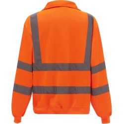 100% polyester antiboulochage. Col montant doublé dans le même tissu. ¼ zip ton sur ton. Doublure jersey. Poignets et taille en bord-côte. Deux bandes réfléchissantes de 5 cm de large autour du corps et des bras et une sur chaque épaule. Finitions double aiguille. Conforme à la norme EN ISO20471:2013 catégorie 3 et à la norme relative aux 'Vêtements de Haute Visibilité' des chemins de fer UK GO/RT 3279 Issue 8:2013 (orange seulement).