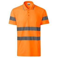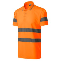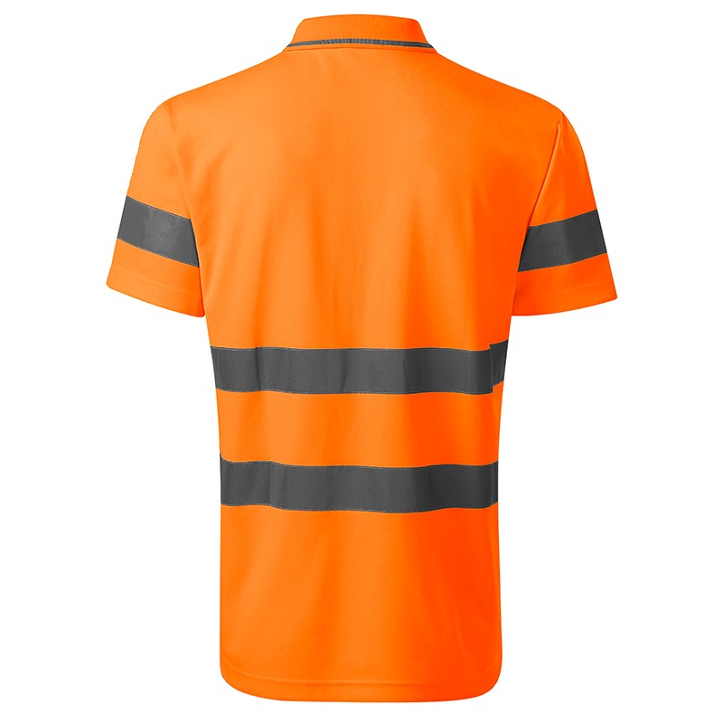 Polo de travail haute visibilité Unisexe Gamme Runway Manches courtes Bande de propreté ton sur ton Patte de boutonnage Bandes rétroréfléchissantes 3M 3 Boutons ton sur ton Maille piquée Coupe droite 55% coton 45% polyester 175 gr/m² Lavable à 40 °C EN ISO 20471 (classe 2) et EN ISO 13688