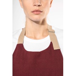 Coloris Hemp et Rosewood : 73% coton recyclé pré-consumer /27% polyester recyclé post-consumer. Coloris Ecume : 73% coton recyclé pré-consumer / 25% polyester recyclé post-consumer /2% autres fibres. Coloris Carbon : 73% coton recyclé / 27% polyester recyclé. Coloris Meadow Green : 65% coton recyclé pré-consumer / 35% polyester recyclé post-consumer. Lavage domestique 60°C. Boucle de réglage en métal au niveau du cou pour ajuster la longueur du tablier. Grande poche avant en deux compartiments. Sangle taille et encolure en coton recyclé, coloris Hemp pour toutes les couleurs. Dimensions : H 90 cm x L 76 cm. Poche : H 20 cm x L 31,5 cm. Issu d’un processus de recyclage, le tissu peut présenter de légères variations de couleur, rendant chaque pièce unique.