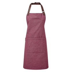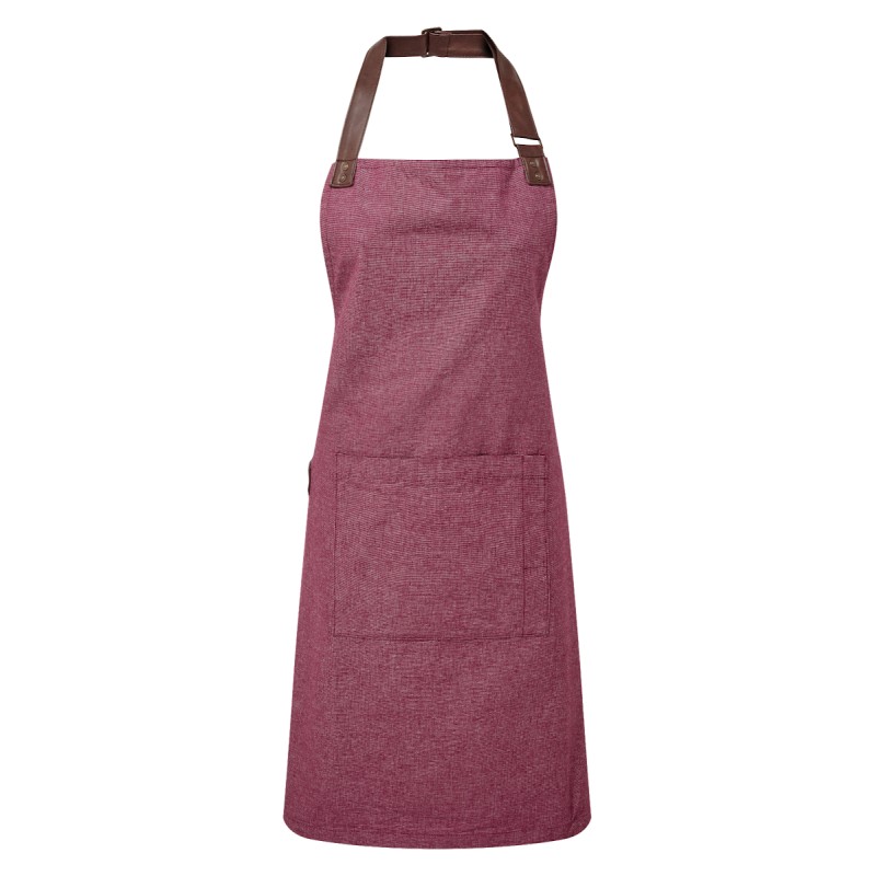 Tablier bavette en fils de coton teints qui sont tissés ensemble pour créer un joli effet contrasté. Poche centrale adaptée pour tablette avec emplacement stylo. Lien dans la continuité du tissu qui s'attache à la taille au moyen d’un anneau en forme de D. Les aspects de simili cuir décoratifs mais pratiques apportent une touche finale splendide à ce magnifique tablier.