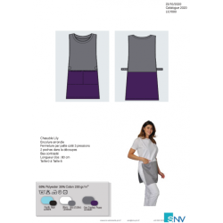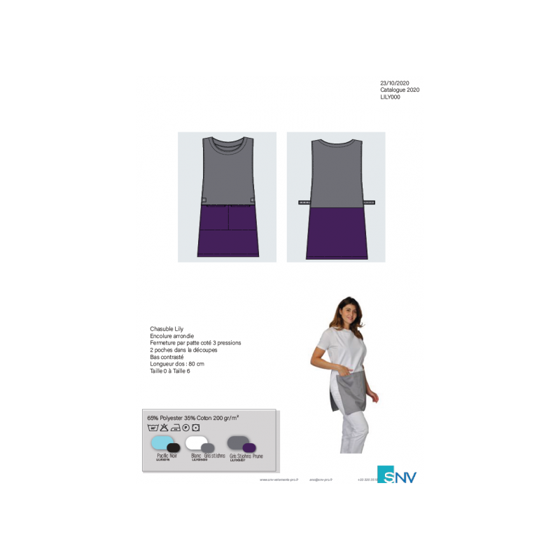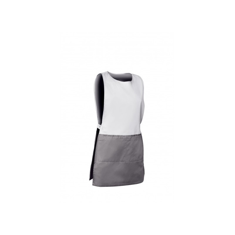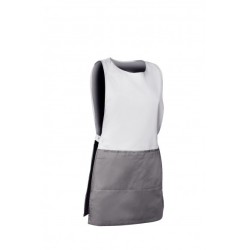 Encolure arrondie deux poches basses discrètes, fermeture côté par pattes 3 pressions, 3 positions de réglage par pressions