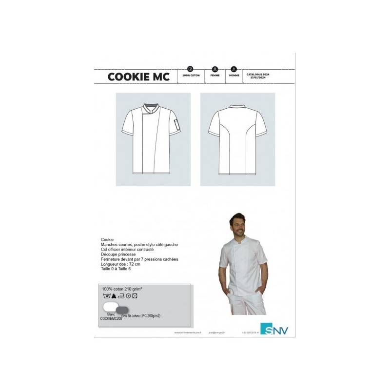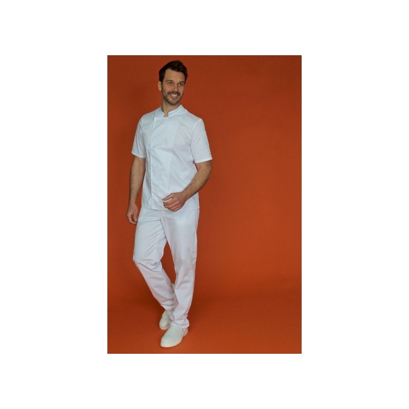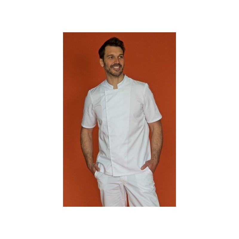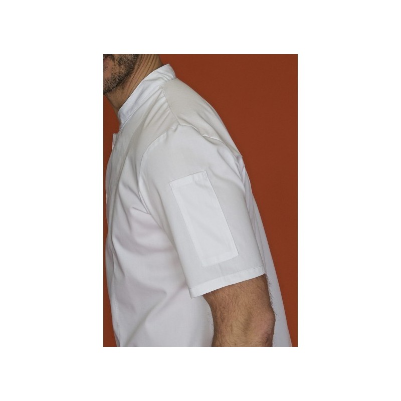 Veste manches courtes, 1 poche stylo, pressions cachées,